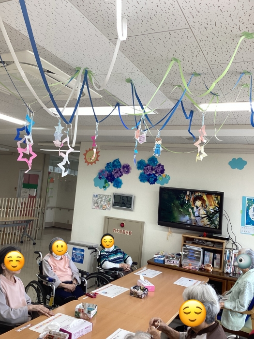 また、七夕にちなんだ歌を歌ったり、願い頃を書いた短冊のお披露目会を行いました。