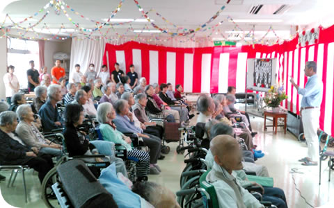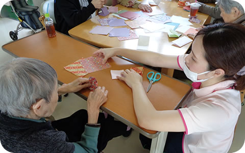 体を動かしたり、頭の体操をしたり、季節感を味わえるレクリエーションを一緒に楽しめるように工夫をいたしております。